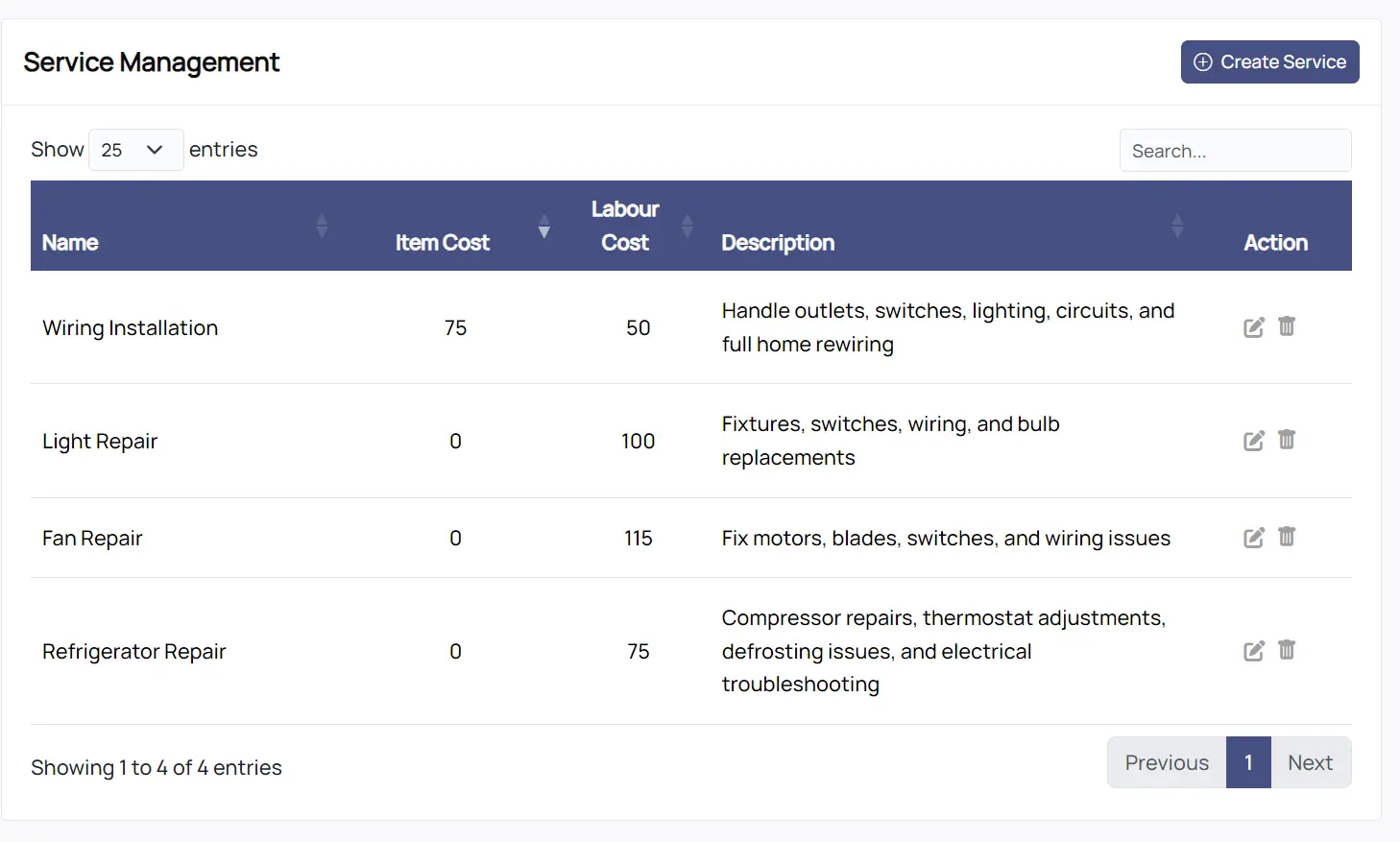 Admins can create and manage the service offerings effortlessly. With just a few clicks, you can define the types of services you provide, set your rates, and establish your availability.